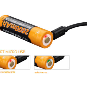 Fenix ARB-L18U 18650 2600 mAh 3,6 V to wysokiej jakości akumulator litowo-jonowy o standardowej pojemności oraz innowacyjnym systemie ładowania za pomocą portu micro-USB.
