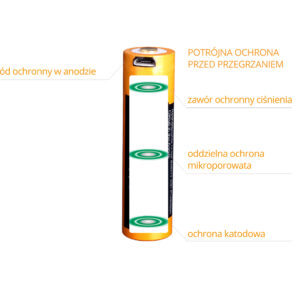 Producent zastosował wielopoziomowy system zabezpieczeń, który w maksymalnym stopniu wydłuża żywotność i zapewnia najwyższy poziom bezpieczeństwa akumulatora.