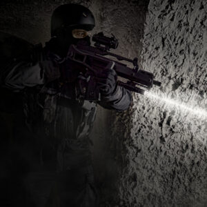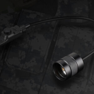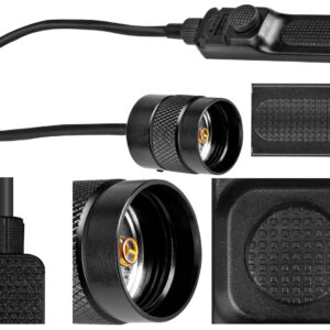 Adapter dokręcany do latarek (gwint TR22,4×1,5 mm) wykonano z aluminium T6. Metal poddano twardemu anodowaniu HA-III co gwarantuje bardzo wysoką odporność na ścieranie i zarysowania. Włącznik można mocować do broni na dwa sposoby tj.